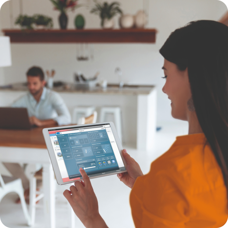 Controlla il tuo impianto di climatizzazione da remoto, via smartphone, tablet o computer grazie all’App dedicata o via browser.