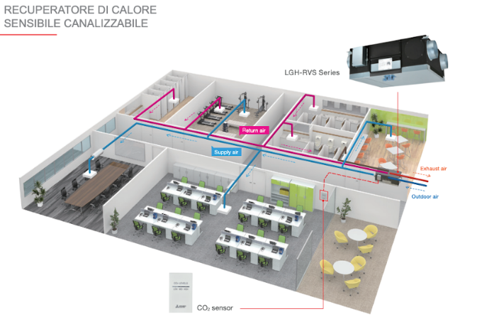 Il nuovo recuperatore sensibile Lossnay LGH-RVS permette di soddisfare diverse esigenze grazie alle sue caratteristiche ed i suoi accessori.